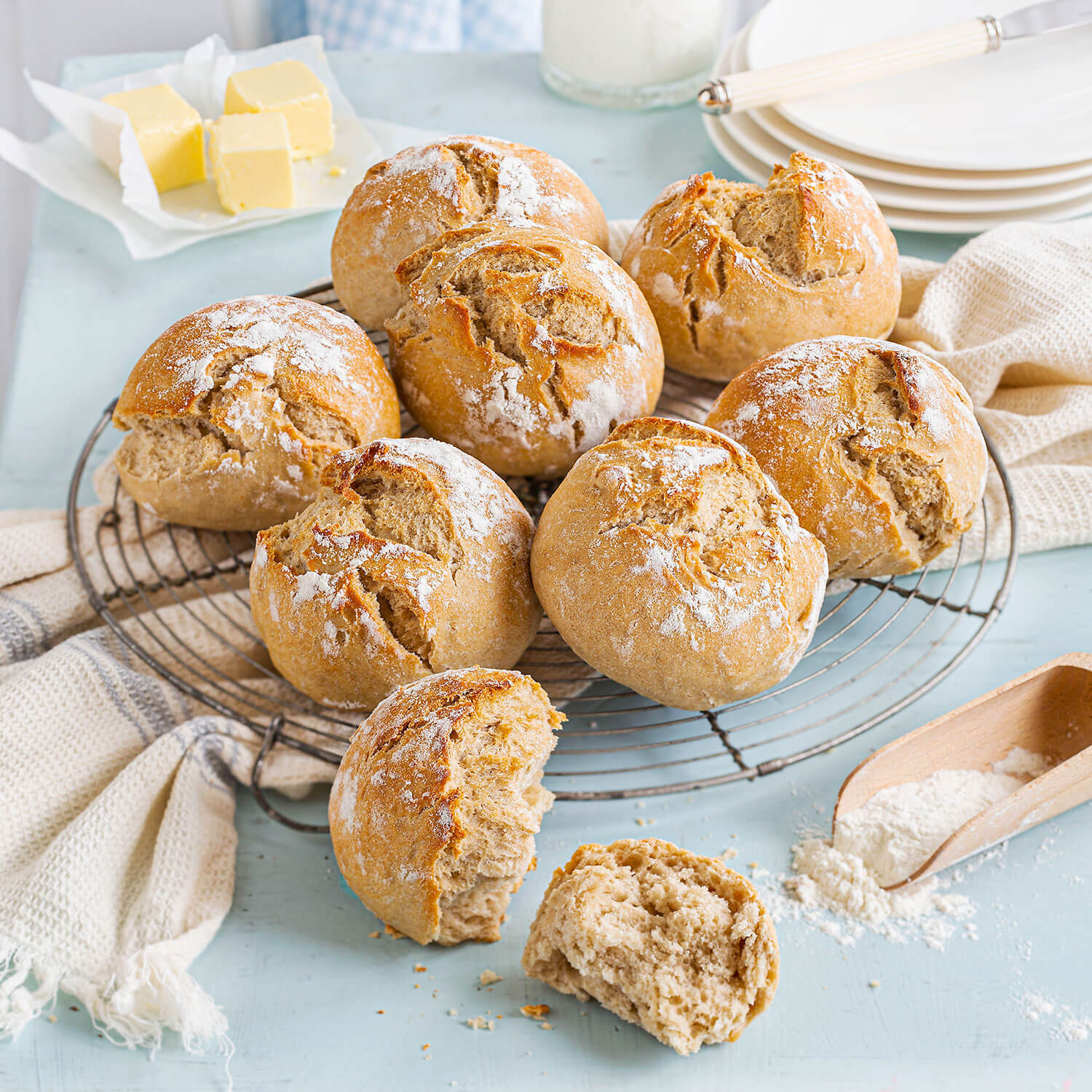 Zur Zubereitung von aromatischen Gebäcken wie Broten und Brötchen. Einfach dem Hefeteig hinzufügen. 1 Pck. (15 g) ist ausreichend für 500 g Mehl, empfohlen wird ein Roggenanteil von höchstens 70% 1. Mehl mit Vollkorn-Roggen-Sauerteig sorgfältig vermischen. Restliche Zutaten zufügen, nach Rezept verarbeiten. 2. Teig nach Zubereitung und vor dem Backen gehen lassen, bis er sich sichtbar vergrößert hat. TIPP: Der Teig sollte an einem warmen Ort aufgehen. Geeignete Plätze hierfür sind - Backofen: Rührschüssel mit einem Geschirrtuch zugedeckt bei 50°C Ober-/Unterhitze in den Backofen stellen. - Mikrowelle: Rührschüssel mit einem feuchten Geschirrtuch oder Küchenpapier zudecken. Mikrowelle auf 80-90 Watt stellen und den Teig etwa 5 Min. gehen lassen, dann 5 Min. ruhen lassen.