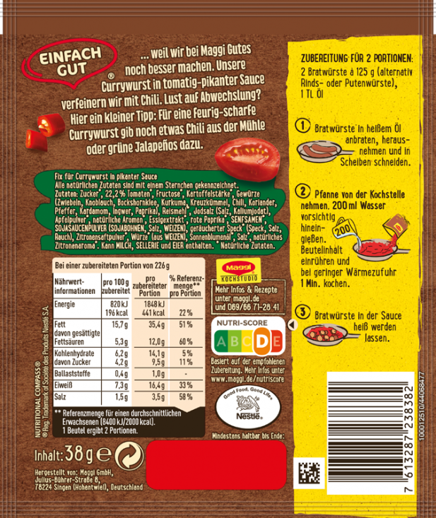 Produktinformationen "Maggi Fix Currywurst 38g Beutel"