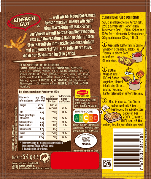 Produktinformationen "Maggi Fix für Ofen-Kartoffeln mit Hackfleisch 34g Beutel"