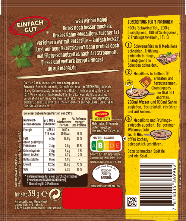 Produktinformationen "Maggi Fix für Rahm-Medaillons Zürcher Art 39g Beutel"